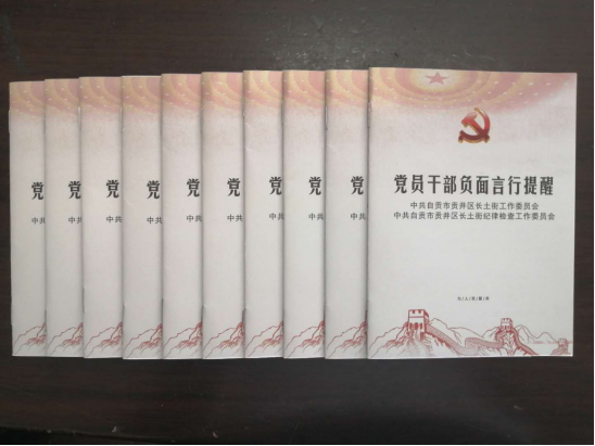 近日,长土街道机关党员、村(社区)两委党员都收到一份印刷成册的“口袋书”《党员干部负面言行提醒》手册,涵盖了干部负面言语提醒、干部负面行为提醒、微信使用负面提醒、普通党员负面言行提醒、窗口单位工作人员负面言行提醒五个板块共45条提醒清单。