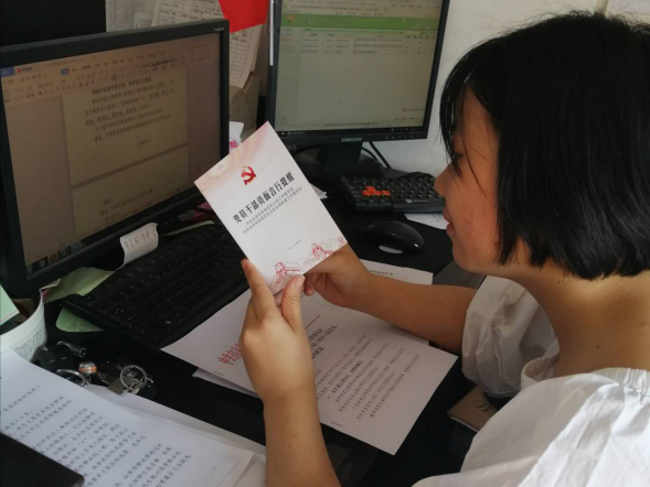 (长土街机关党员利用空闲时间学习《手册》 王钰珠摄)