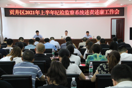 为进一步压紧压实责任和加强廉洁建设,推动纪检监察工作高质量发展,7月21日上午,贡井区召开2021年上半年纪检监察系统述责述廉工作会。会议由区纪委副书记、监委副主任赖富贵主持。区纪委监委班子成员,委机关部室负责人,各镇(街道)纪(工)委书记、副书记,自贡航空产业园纪工委负责人,各派驻纪检监察组组长、副组长参加会议。区委常委、区纪委书记、区监委主任董如荣出席会议并讲话。