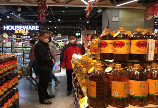 “粮食油价涨没涨?超市粮油供应够不够?你们还有没有需要协调解决的问题?......”区纪委监委派驻区发展和改革局纪检监察组组长舒维建正在超市检查粮油保障情况。
