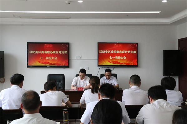 为庆祝中国共产党百年华诞,6月29日下午,区纪委区委巡察办联合支部召开“七一”表扬大会。区委常委、区纪委书记、区监委主任董如荣出席会议并讲话。