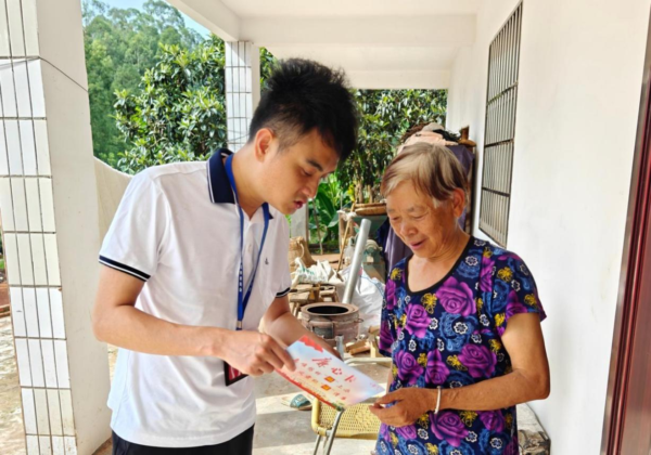 (图为五宝镇纪委书记李学瀚入户发放廉心卡 李一可摄)