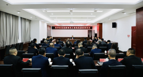 近日,贡井区召开的县处级领导干部集体廉政谈话会。会上,领导干部们全神贯注的观看警示教育片《第二个答案》。像这样召开廉政谈话会只是贡井区强化“关键少数”监督工作的重要举措之一。