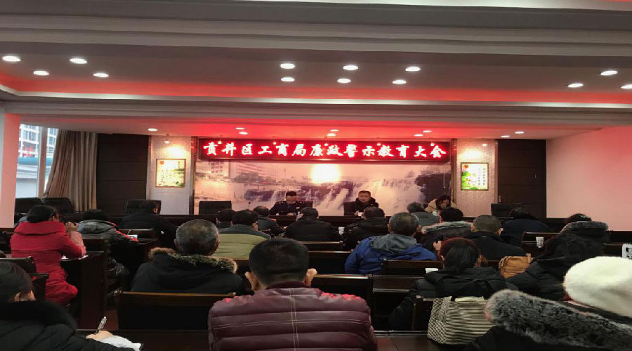 1月26日下午,贡井区工商局召开全局干部职工大会暨廉政建设警示教育大会。