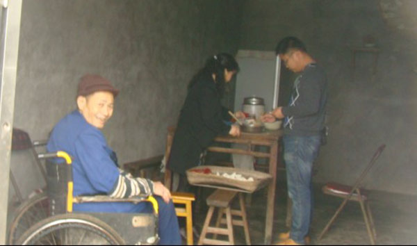 下图为民政局干部职工到白庙镇斑竹村赵新德家中同他一起做饭