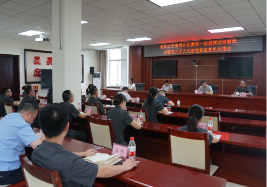 8月18日,贡井区委第一巡视联动巡察组在区法院召开巡察意见反馈会。区委第一巡视联动巡察组组长黄鹤飞反馈了巡察情况,并提出了意见建议。区纪委副书记、区监委副主任、区委巡察工作领导小组成员洪霞提出了整改要求。区法院党组成员、副院长熊绍清主持会议并代表区法院党组作表态发言。区委第一巡视联动巡察组副组长,区委组织部、区委巡察办、区纪委监委派驻区委政法委纪检监察组有关同志、区法院党组班子成员及中层干部等共计25人参加会议。
