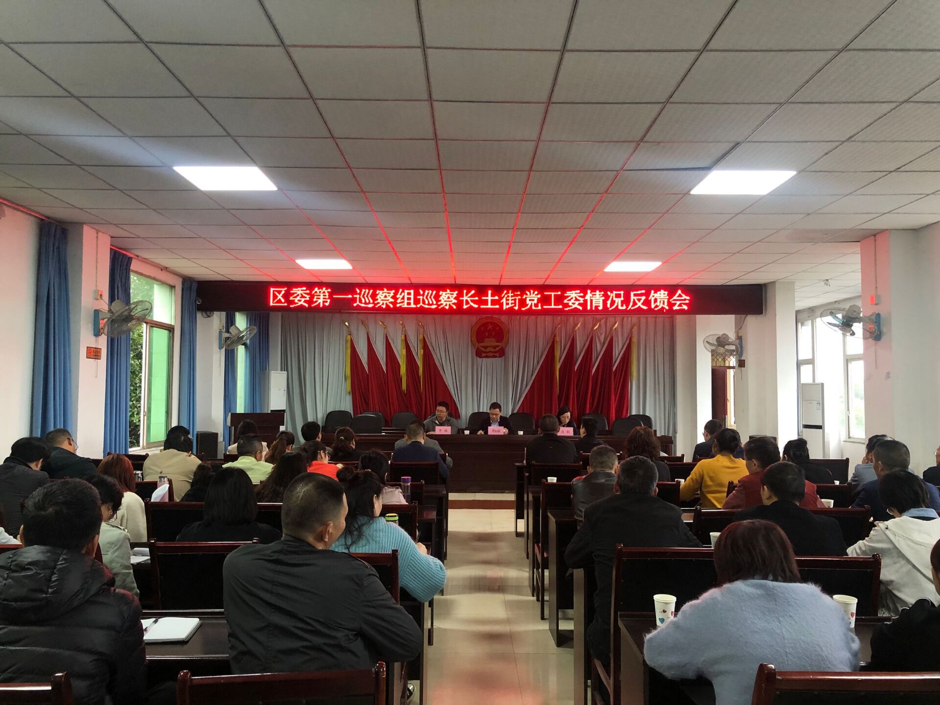 10月14日下午,区委第一巡察组召开巡察长土街党工委情况反馈会。区委常委、区纪委书记、区监委主任、区委巡察工作领导小组常务副组长董如荣,区委第一巡察组组长沈娟、副组长邓杨利、巡察组全体成员,区纪委监委、区委组织部、区委巡察办相关人员,长土街党工委领导班子、机关干部职工和部分村(社)主要负责人参加会议。