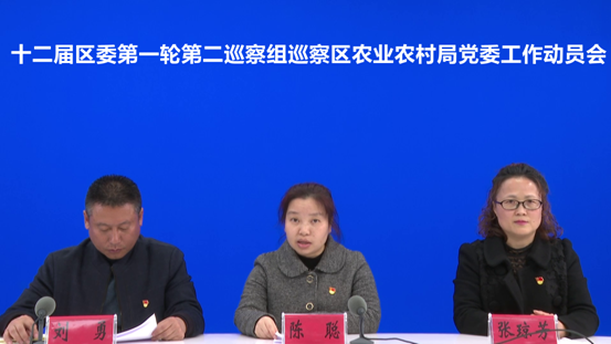 根据区委关于巡察工作的统一部署,2022年3月1日上午,十二届区委第一轮第二巡察组以视频形式召开了巡察贡井区农业农村局党委工作动员会。动员会上,巡察组组长张琼芳通报了巡察任务和工作安排,区委组织部常务副部长、区委巡察工作领导小组成员陈聪就巡察工作提出了要求,区农业农村局党委书记刘勇主持会议并作表态发言。