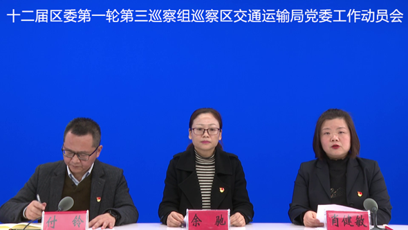 根据区委关于巡察工作的统一部署,2022年3月1日,十二届区委第一轮第三巡察组以视频形式召开了巡察区交通运输局党委工作动员会。动员会上,巡察组组长肖健敏通报了巡察任务和工作安排,区纪委常委、区委巡察工作领导小组成员、区委巡察办主任余驰就巡察工作提出了要求,区交通运输局党委书记付铃主持会议并作表态发言。