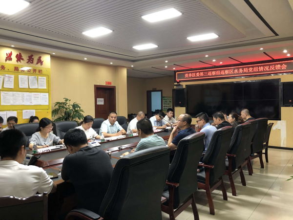 2022年7月27日上午,区委第三巡察组召开巡察区水务局党组情况反馈会。区纪委副书记、区监委副主任、区委巡察工作领导小组成员涂胜波,区委第三巡察组组长肖健敏、副组长车淑丽、区水务局党组领导班子,区纪委监委、区委组织部和驻区农业农村局纪检监察组有关人员,区水务局机关全体职工参加会议。