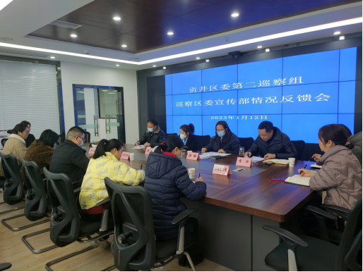 2023年1月12日上午,区委第二巡察组召开巡察区委宣传部情况反馈会。区委组织部常务副部长、区委巡察工作领导小组成员陈聪,区委第二巡察组组长洪梅、副组长罗智敏,区委宣传部领导班子,区纪委监委、区委组织部和驻区委派驻纪检监察组有关人员,区委宣传部全体职工参加会议。