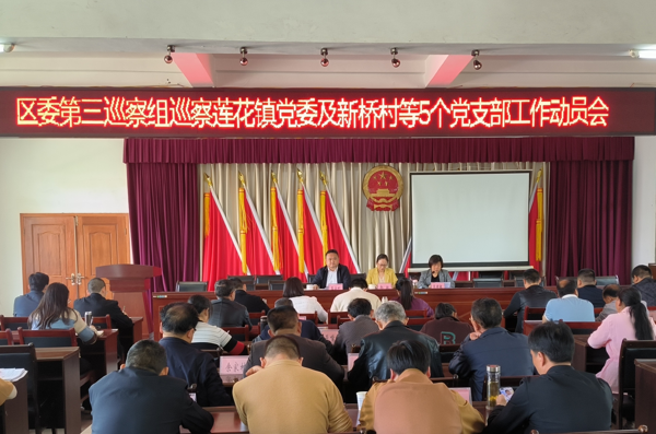 根据区委关于巡察工作的统一部署,2023年4月25日,区委第三巡察组巡察莲花镇党委工作动员会召开。会前,区委第三巡察组组长肖健敏主持召开与莲花镇党委书记王安利的见面沟通会议。会上,区委第三巡察组组长肖健敏通报了巡察任务和工作安排,区纪委常委、区委巡察工作领导小组成员、区委巡察办主任余驰就配合做好巡察工作提出要求,莲花镇新桥村党支部委员习长宽作了表态发言,莲花镇党委书记王安利主持会议并作表态发言。