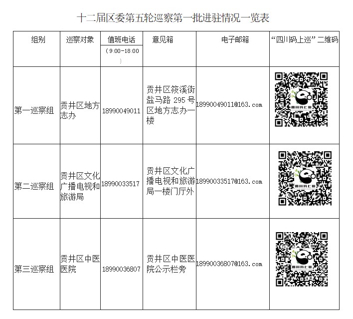根据工作安排,巡察组原则上在每个单位巡察时间为 1 个月左右。巡察期间,各巡察组设专门值班电话,开通电子邮箱、信访意见箱和“四川码上巡”二维码等信访渠道,受理电话信访的时间为工作日9:00至18:00,主要受理反映被巡察党组织领导班子及班子成员、下一级党组织主要负责人和重要岗位领导干部问题的来信来电来访,重点是违反政治纪律、组织纪律、廉洁纪律、群众纪律、工作纪律和生活纪律等方面的举报和反映。对其他不属于巡察受理范围的信访问题,将按规定转交相关部门办理。