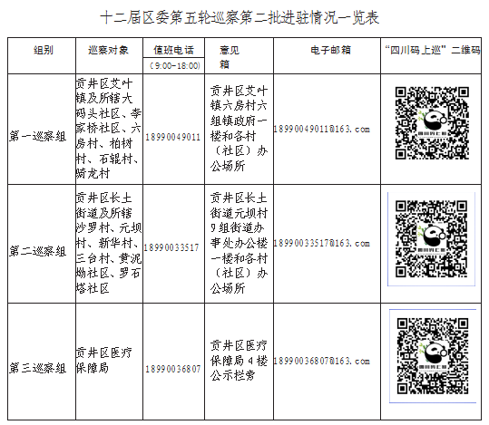 根据工作安排,巡察组原则上在每个单位巡察时间为1个月左右。巡察期间,各巡察组设专门值班电话,开通电子邮箱、信访意见箱和“四川码上巡”二维码等信访渠道,受理电话信访的时间为工作日9:00至18:00,主要受理反映被巡察党组织领导班子及班子成员、下一级党组织主要负责人和重要岗位领导干部问题的来信来电来访,重点是违反政治纪律、组织纪律、廉洁纪律、群众纪律、工作纪律和生活纪律等方面的举报和反映。对其他不属于巡察受理范围的信访问题,将按规定转交相关部门办理。