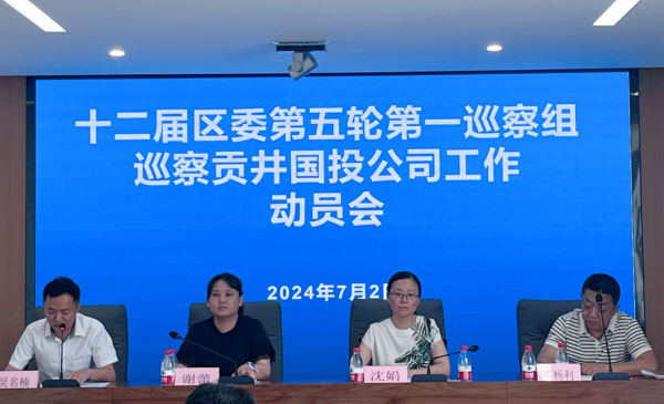 根据区委关于巡察工作的统一部署,2024年7月2日,区委第五轮第一巡察组巡察贡井区国投公司工作动员会召开。会前,区委第一巡察组组长沈娟主持召开与贡井区国投公司主要负责人吴名楠的见面沟通会议。会上,区委第一巡察组组长沈娟通报了巡察任务和工作安排,区纪委常务副书记、区监委副主任 、区委巡察工作领导小组成员谢蕾就配合做好巡察工作提出要求,贡井区国投公司总经理吴名楠主持会议并作表态发言。