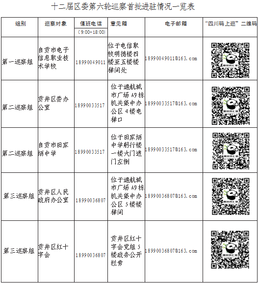根据工作安排,巡察组原则上在每个单位巡察时间为 1 个月左右。巡察期间,各巡察组设专门值班电话,开通电子邮箱、信访意见箱和“四川码上巡”二维码等信访渠道,受理电话信访的时间为工作日9:00至18:00,主要受理反映被巡察党组织领导班子及班子成员、下一级党组织主要负责人和重要岗位领导干部问题的来信来电来访,重点是违反政治纪律、组织纪律、廉洁纪律、群众纪律、工作纪律和生活纪律等方面的举报和反映。对其他不属于巡察受理范围的信访问题,将按规定转交相关部门办理。