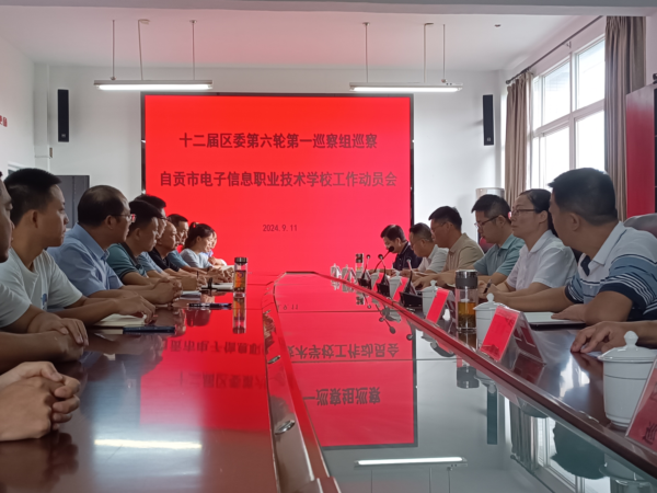 根据区委关于巡察工作的统一部署,2024年9月11日,区委第六轮第一巡察组巡察自贡市电子信息职业技术学校(以下简称电信职校)工作动员会召开。会前,区委第一巡察组组长沈娟主持召开与电信职校党总支书记陈思的见面沟通会议。会上,区委第一巡察组组长沈娟通报了巡察任务和工作安排,区纪委副书记、区委巡察工作领导小组成员董远就配合做好巡察工作提出要求,电信职校党总支书记陈思主持会议并作表态发言。