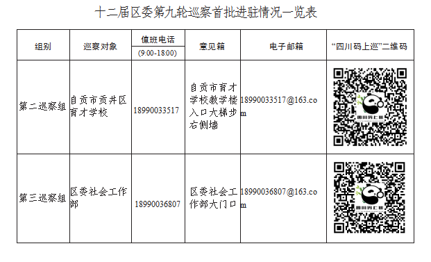 根据工作安排,巡察组原则上对每个常规巡察对象的巡察时间为1个月左右。巡察期间,各巡察组设专门值班电话,开通电子邮箱、信访意见箱和“四川码上巡”二维码等信访渠道,受理电话信访的时间为工作日9:00至18:00,主要受理反映被巡察党组织领导班子及班子成员、下一级党组织主要负责人和重要岗位领导干部问题的来信来电来访,重点是违反政治纪律、组织纪律、廉洁纪律、群众纪律、工作纪律和生活纪律等方面的举报和反映。对其他不属于巡察受理范围的信访问题,将按规定转交相关部门办理。