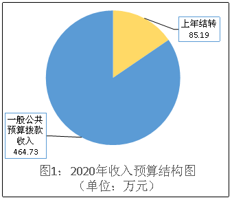 收入包括:本年一般公共预算拨款收入464.73万元,上年结转一般公共预算拨款收入85.19万元;支出包括:一般公共服务支出484.26万元、社会保障和就业支出28.57万元、卫生健康支出15.71万元、住房保障支出21.38万元。