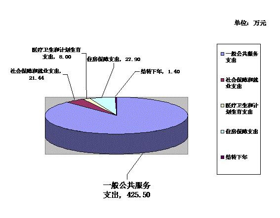 2017年一般公共预算财政拨款总支出484.24万元,其中:一般公共服务支出425.50万元,占总支出88.12%;社会保障和就业支出21.44万元,占总支出4.44%;医疗卫生和计划生育支出8.00万元,占总支出1.66%;住房保障支出27.90万元,占总支出5.78%;结转下年1.40万元。