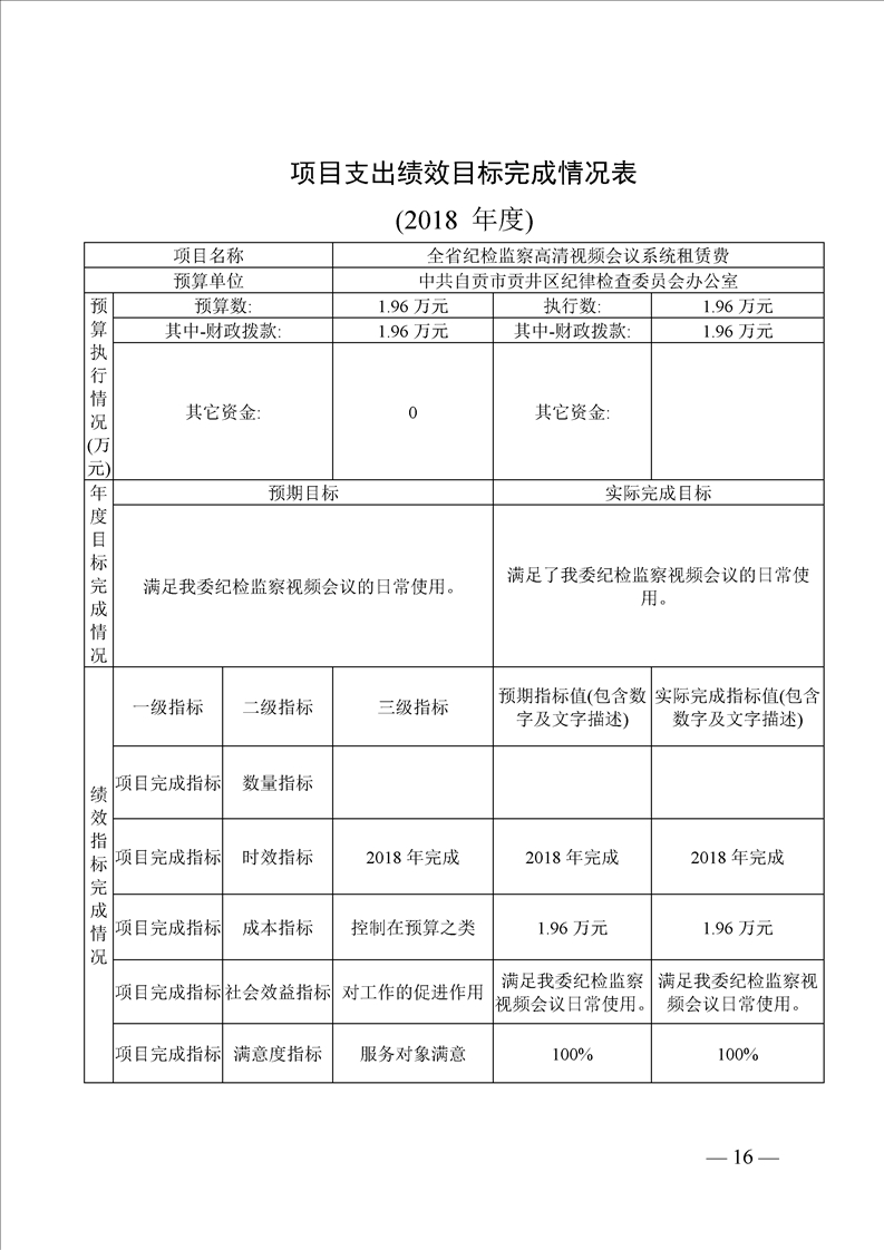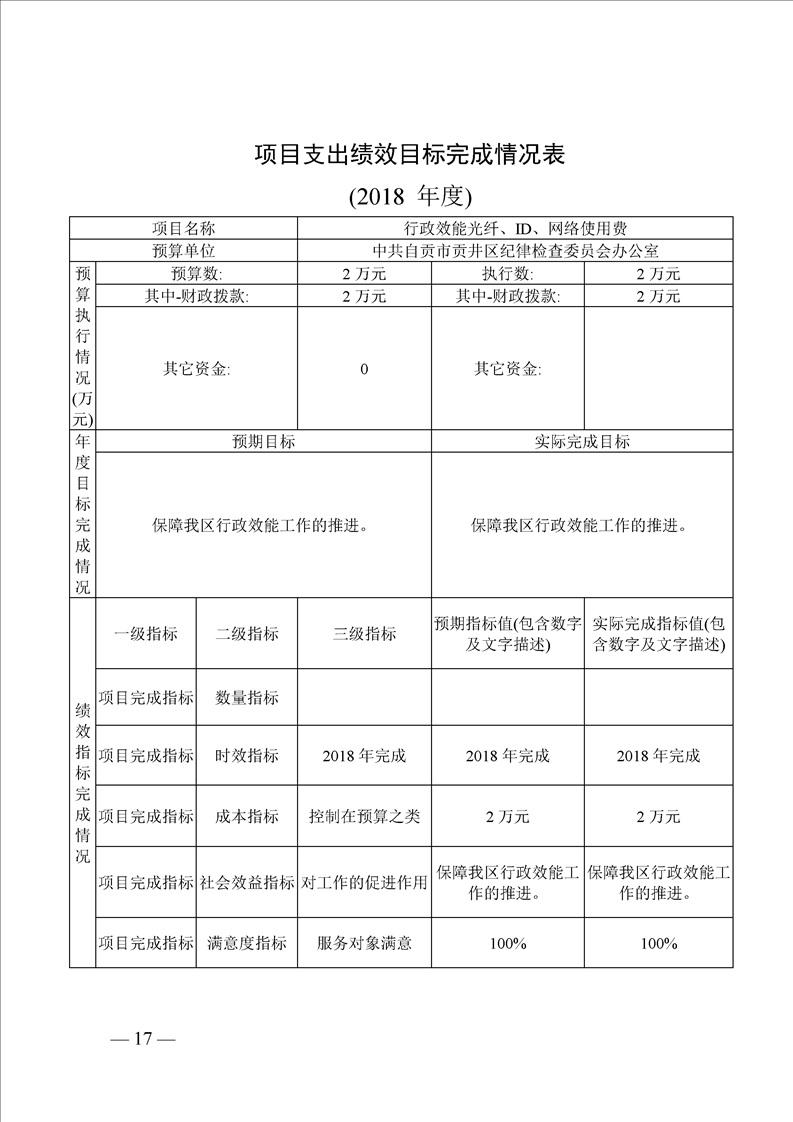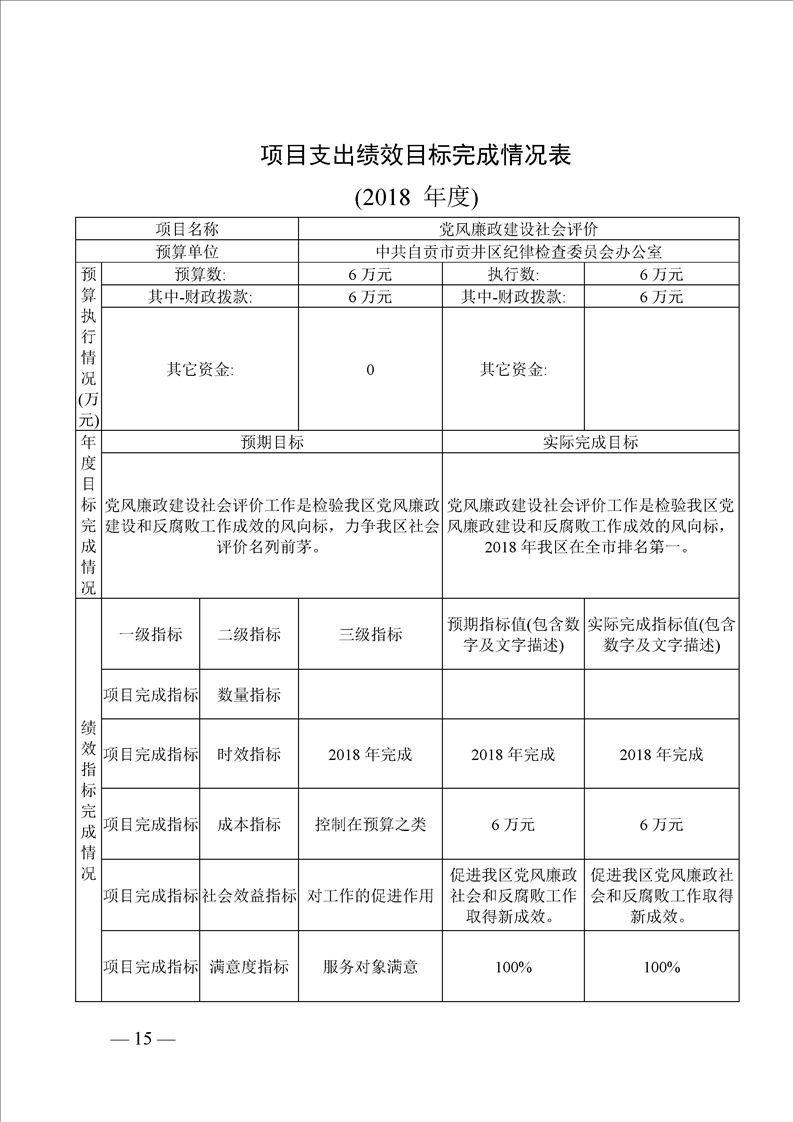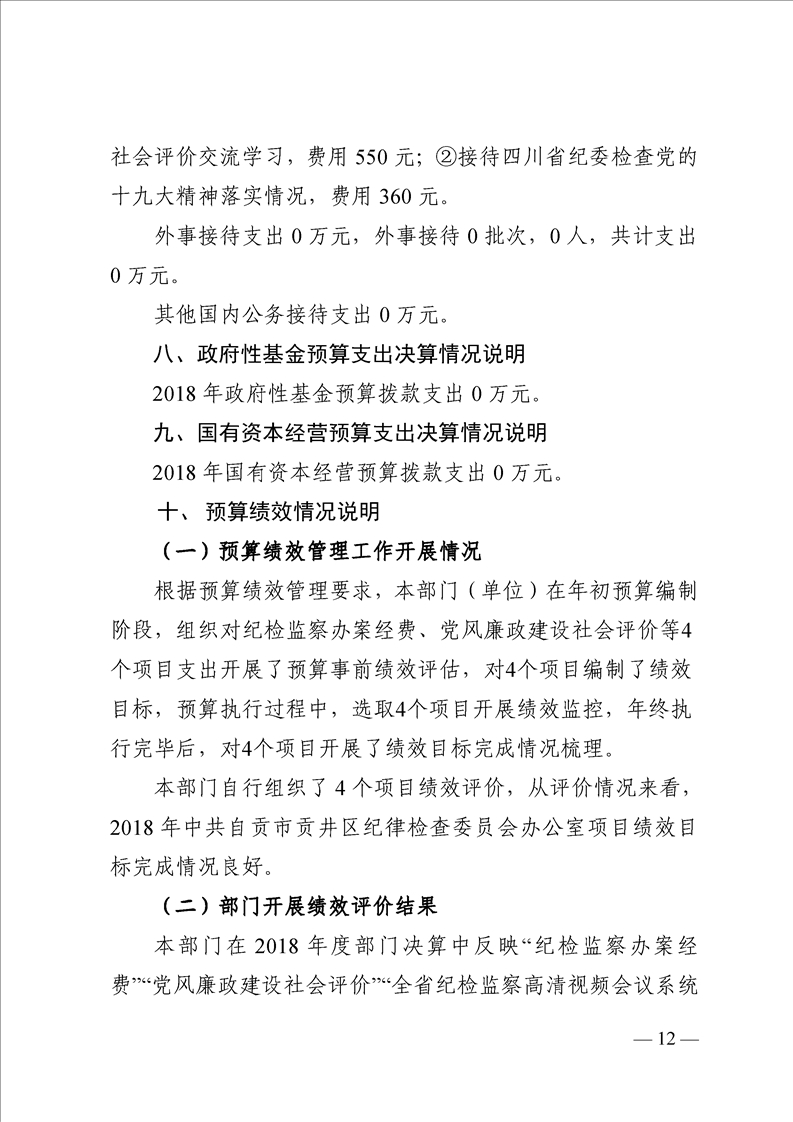 中共自贡市贡井区纪律检查委员会2018年度决算公开