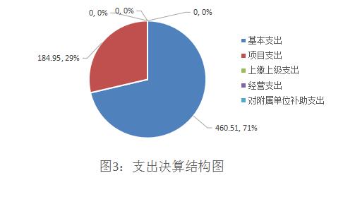 2019年本年支出合计645.46万元,其中:基本支出460.51万元,占71.35%;项目支出184.95万元,占28.65%,无上缴上级支出,无经营支出,无对附属单位补助支出。