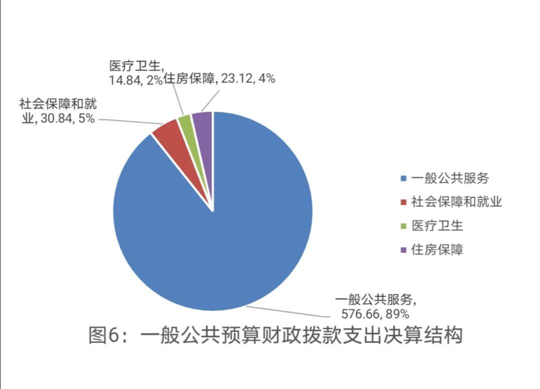 2019年一般公共预算财政拨款支出645.46万元,主要用于以下方面:一般公共服务(类)支出576.66万元,占89.34%;社会保障和就业(类)支出30.84万元,占4.78%;医疗卫生支出14.84万元,占2.30%;住房保障支出23.12万元,占3.58%。