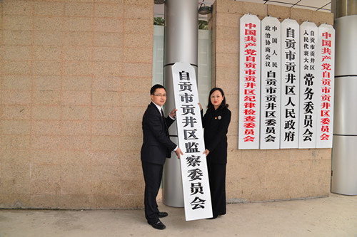1月19日下午,区委书记、区深化国家监察体制改革试点工作小组组长黄劲,区委常委、区纪委书记、区监委会主任董如荣共同为自贡市贡井区监察委员会挂牌,并召开成立大会,标志着自贡市贡井区监察委员会正式成立。