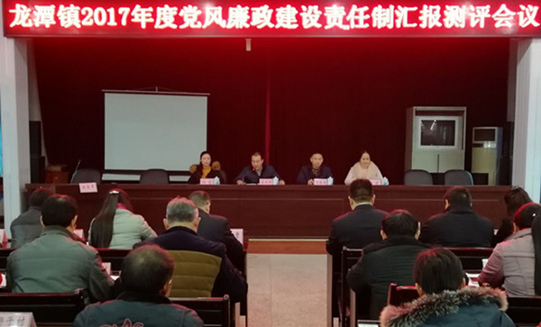 汇报测评会上,镇党委书记朱平代表龙潭镇党委班子汇报了2017年龙潭镇领导班子落实党风廉政建设责任制情况及个人述责述廉情况,镇长姜仁贵汇报了2017年个人述责述廉情况。