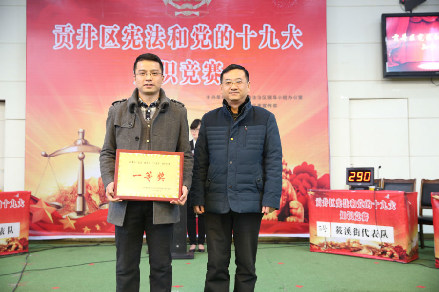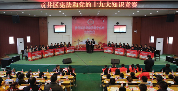 为深入学习贯彻《宪法》和党的十九大精神,把全区各级党组织和干部群众的思想、行动统一到党的十九大精神上来,坚定以习近平新时代中国特色社会主义思想为统揽,加快建设“法治贡井”和“产业强区、品质西城”,推动贡井经济社会实现新跨越,近日,来自全区部分机关、乡镇(街道)、企业的8支队伍24名代表汇聚自贡市育才小学,围绕《宪法》和党的十九大知识展开竞赛。
