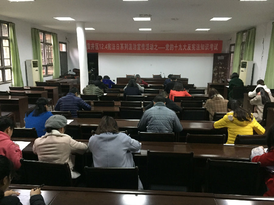 为全面贯彻落实党的十九大精神,提高十九大精神、党章党规以及《宪法》知识的知晓率,营造出学习贯彻党的十九大精神的浓厚氛围,12月5日下午,贡井区纪委以考促学、以学促用,参加了一场别开生面的十九大精神、党章党规以及《宪法》知识的考试,区纪委全体机关干部以学习好、领悟好、贯彻好十九大精神、党章党规以及《宪法》知识为目标参加了本次考试。