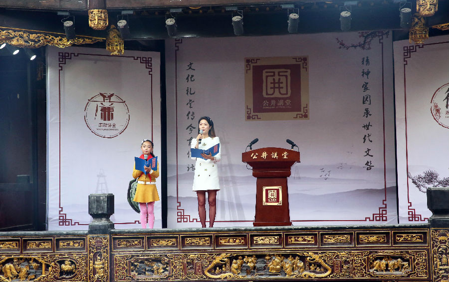 “君之所贵者,仁也……见不义之财勿取,遇合理之事则从……”活动在刘慧娟母女朗朗的诵读声中拉开序幕,先贤“修身齐家”的“治家之经”穿越历史长河的记忆,回荡在陈家祠堂的天井中,劝谏在座各位崇德守廉、笃信为人。