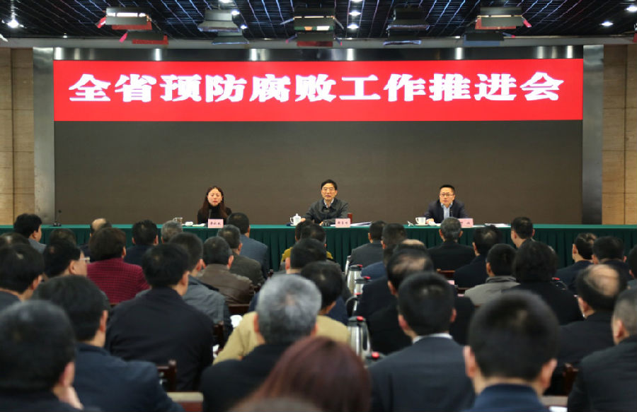 会议总结交流了预防腐败工作经验,安排部署了当前和今后一个时期全省防腐治腐工作。会议强调,强化责任担当,坚持真抓实干,纵深推进全省预防腐败工作,以优异成绩迎接党的十九大和省第十一次党代会胜利召开。