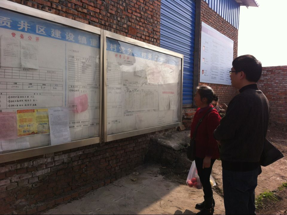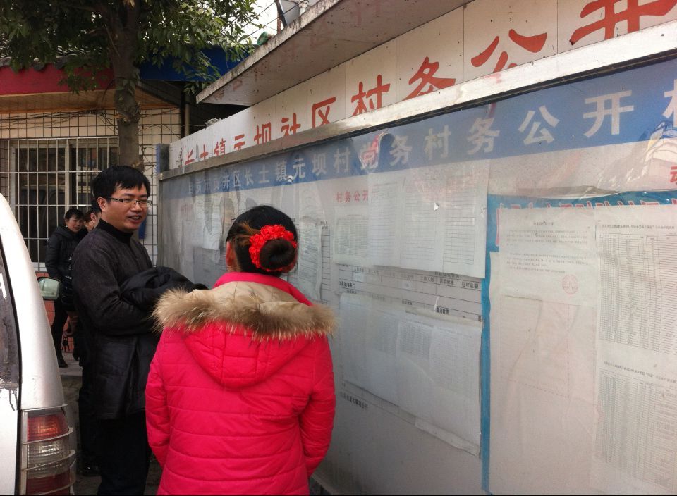 上图为胡小波在元坝村查看村务公开情况