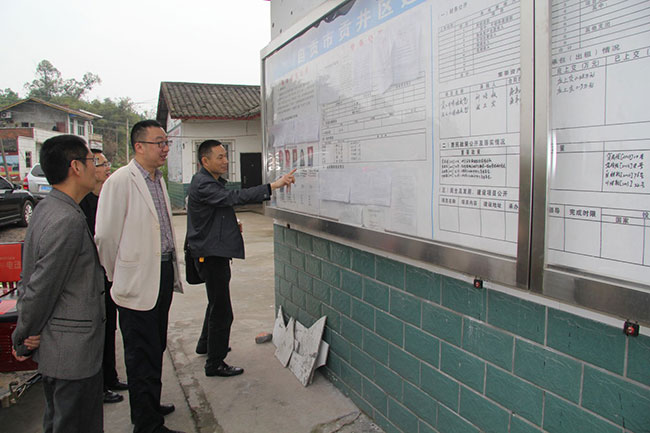 图为:市纪委副书记曹友良在建设镇大田村查看该村党务村务公开栏