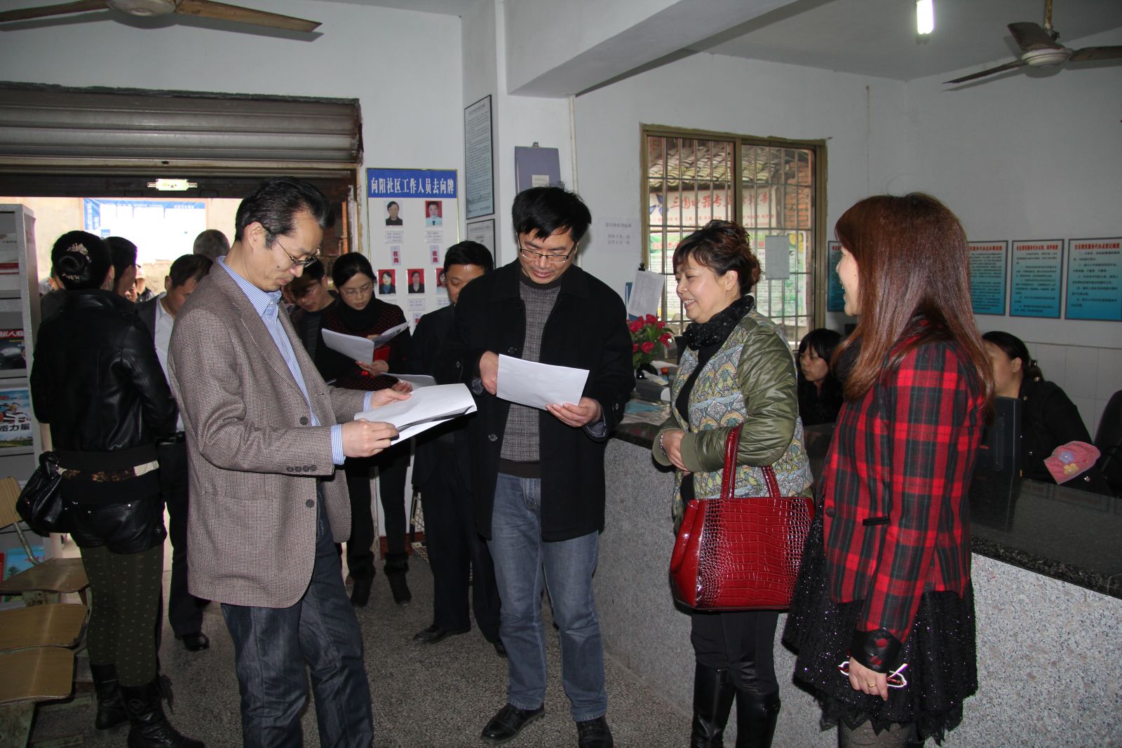 图1:沿滩区纪委一行在向阳路社区交流党风廉政建设社会评价工作