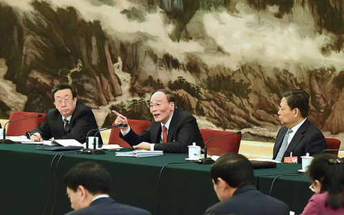 3月7日上午,王岐山参加河南代表团审议。在听取谢伏瞻、凌解放等代表发言后,王岐山指出,各级纪检监察机关贯彻落实党的十八大、十八届二中、三中全会和习近平总书记系列讲话精神,明确职责定位,聚焦中心任务,转职能、转方式、转作风。中央纪委监察部将参与的125个议事协调机构清理至14个;在不增加机构、编制和人员的情况下,增设纪检监察室,把更多的力量调配到党风廉政建设和反腐败斗争主业上;专门设立纪检监察干部监督室,强化自我监督,体现了打铁还需自身硬的要求。纪检监察机关要深化“三转”,推进改革创新,强化基础工作,做到情况明、数字准、责任清、作风正、工作实。王岐山希望河南统筹经济社会发展,谱写中原崛起新篇章。