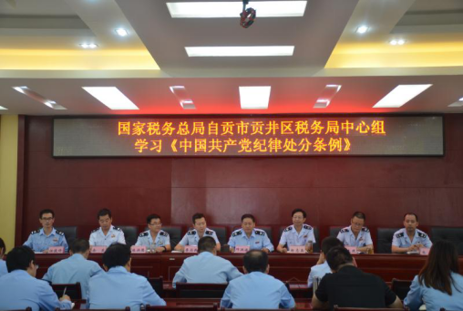 9月19日,贡井区税务局联合党委书记、局长邓洪源主持召开党委中心组理论学习,专题深入学习新修订的《中国共产党纪律处分条例》,并结合工作实际进行讨论交流。